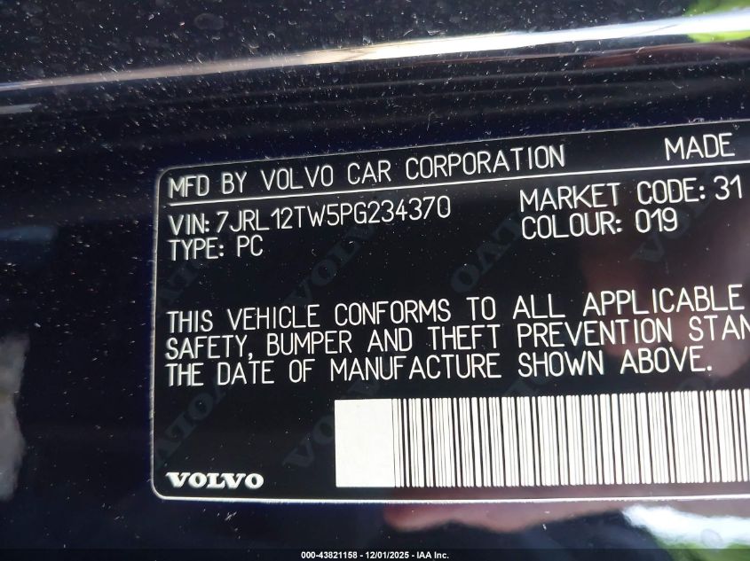 2023 VOLVO S60 2023 року Бензин, 2.0, Полный привод, vin - 7JRL12TW5PG234370 из США