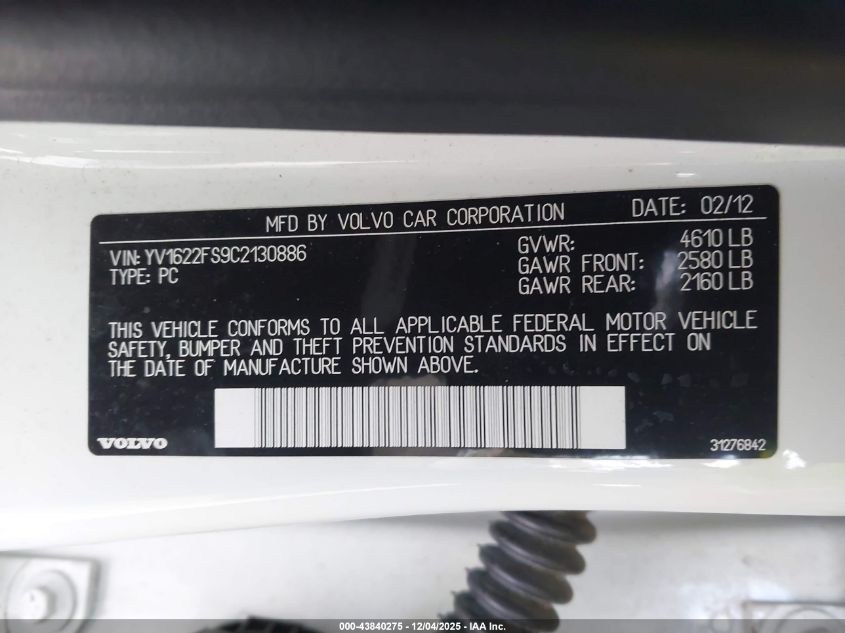 2012 VOLVO S60 T6