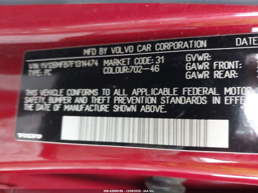 Цвет БургундияЦилиндры 4Привод Передний приводVIN YV126MFB7F1314474Состояние Заводится и едет (проверено)Повреждения Обычный износДата аукциона 2025-12-19 AutoRIA