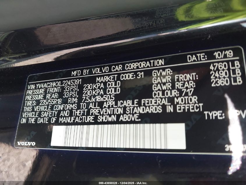 2020 VOLVO XC40 2020 року Бензин, 2.0, Передний привод, vin - YV4AC2HKXL2245391 из США