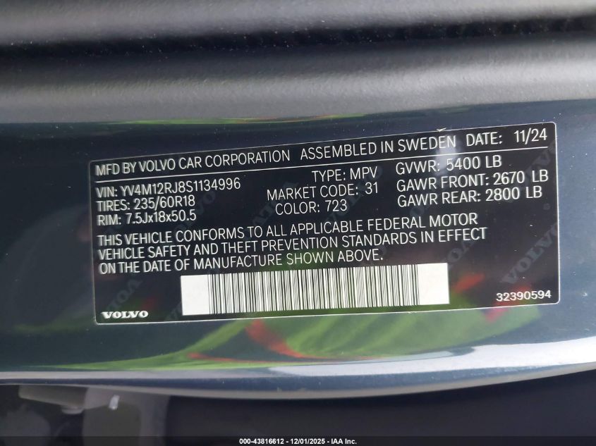 2025 VOLVO XC60 2025 року Бензин, 2.0, Полный привод, vin - YV4M12RJ8S1134996 из США