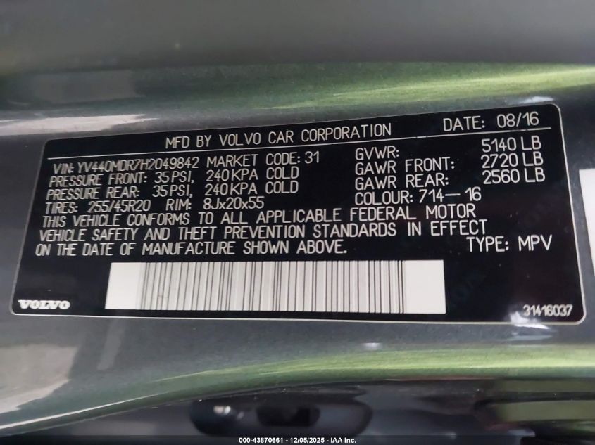 2017 VOLVO XC60 2017 року Бензин, 2.0, Передний привод, vin - YV440MDR7H2049842 из США