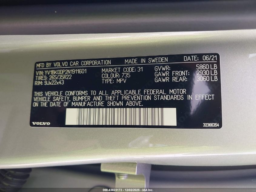 2022 VOLVO XC60 2022 року Гибрид, 2.0, Полный привод, vin - YV1BK0DP2N1911601 из США