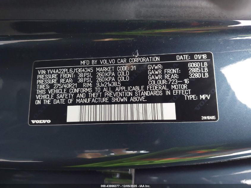 2018 VOLVO XC90 2018 року Бензин, 2.0, Полный привод, vin - YV4A22PL6J1364345 из США