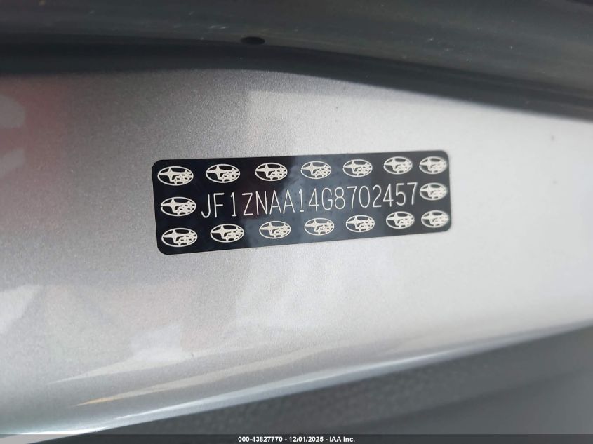 Колір СрібнийЦиліндри 4Привід Задній привідVIN JF1ZNAA14G8702457Стан СтаціонарноУшкодження Передня або задня AutoRIA