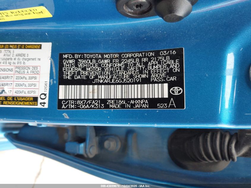 Колір СинійЦиліндри 4Привід Передній привідVIN JTNKARJE6GJ520191Стан Заводиться та їде (перевірено)Ушкодження Передня або задня AutoRIA