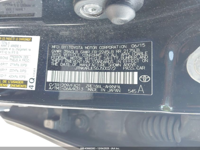 Колір ЧорнийЦиліндри 4Привід Передній привідVIN JTNKARJE5GJ500272Стан СтаціонарноУшкодження Ліва сторона AutoRIA