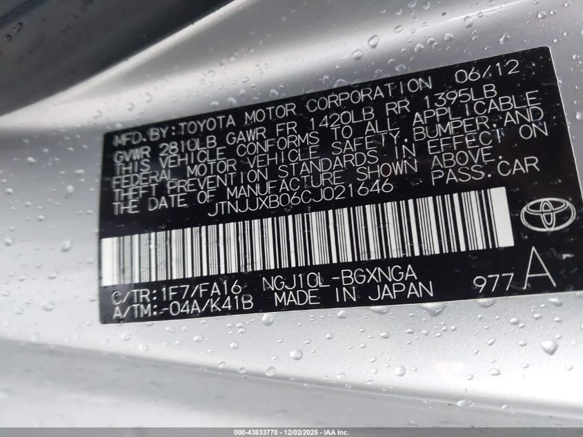 Колір СрібнийЦиліндри 4Привід Передній привідVIN JTNJJXB06CJ021646Стан СтаціонарноУшкодження Передня праваДата аукціону 2025-12-08