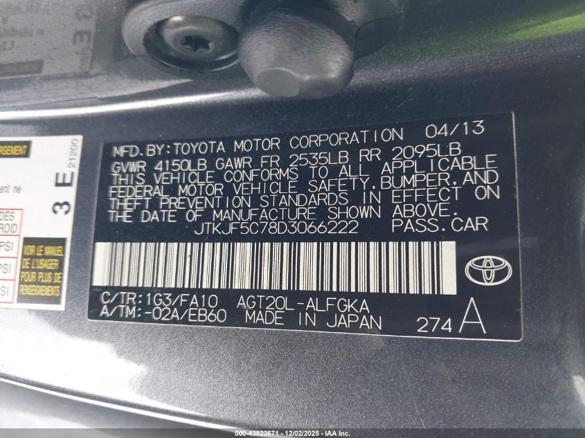 Колір СірийЦиліндри 4Привід Передній привідVIN JTKJF5C78D3066222Стан Заводиться та їде (перевірено)Ушкодження Передня або задня AutoRIA