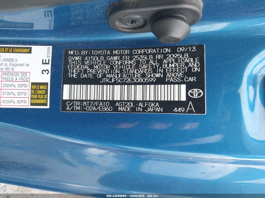 Колір СинійЦиліндри 4Привід Передній привідVIN JTKJF5C72E3080599Стан Заводиться та їде (перевірено)Ушкодження Права сторона AutoRIA