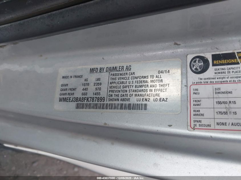 Колір БілийЦиліндри 3Привід Задній привідVIN WMEEJ3BA8FK787899Стан Заводиться та їде (перевірено)Ушкодження Передня або задня AutoRIA
