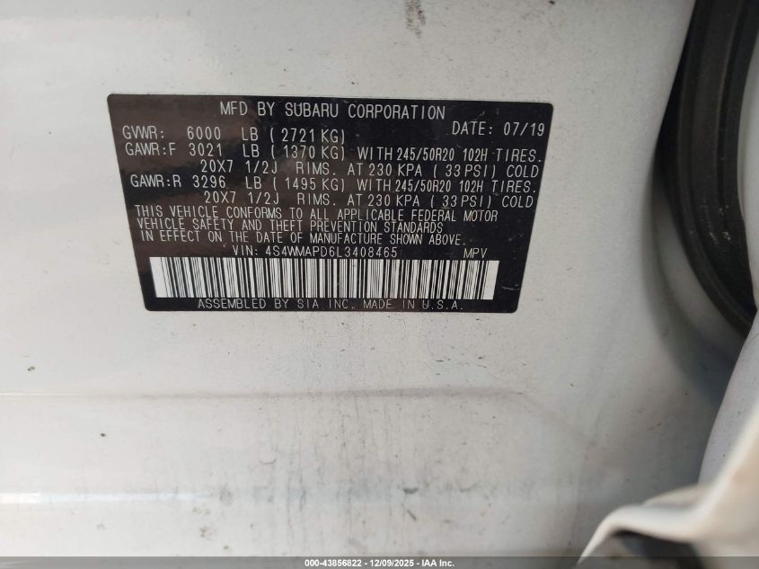 2020 SUBARU ASCENT 2020 року Бензин, 2.4, Повний привід, vin - 4S4WMAPD6L3408465 з США