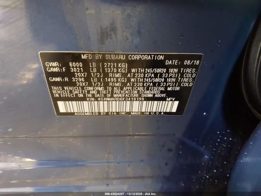 2019 SUBARU ASCENT 2019 року Бензин, 2.4, Повний привід, vin - 4S4WMARD6K3419199 з США