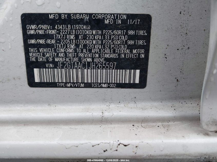 2018 SUBARU CROSSTREK 2018 року Бензин, 2.0, Повний привід, vin - JF2GTAAC1JH265597 з США