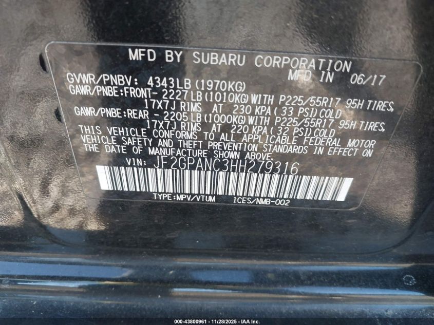 2017 SUBARU CROSSTREK 2017 року Бензин, 2.0, Повний привід, vin - JF2GPANC3HH279316 з США