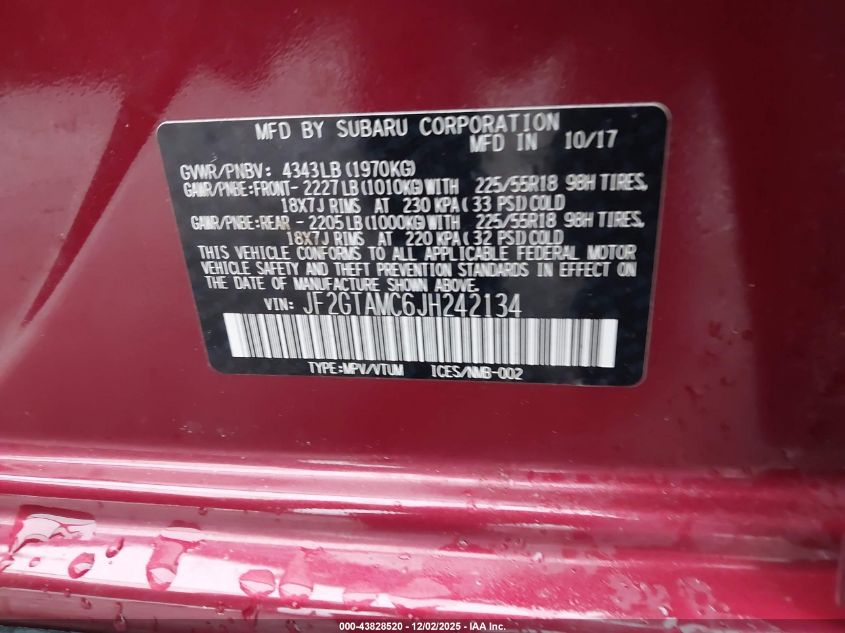 2018 SUBARU CROSSTREK 2018 року Бензин, 2.0, Повний привід, vin - JF2GTAMC6JH242134 з США