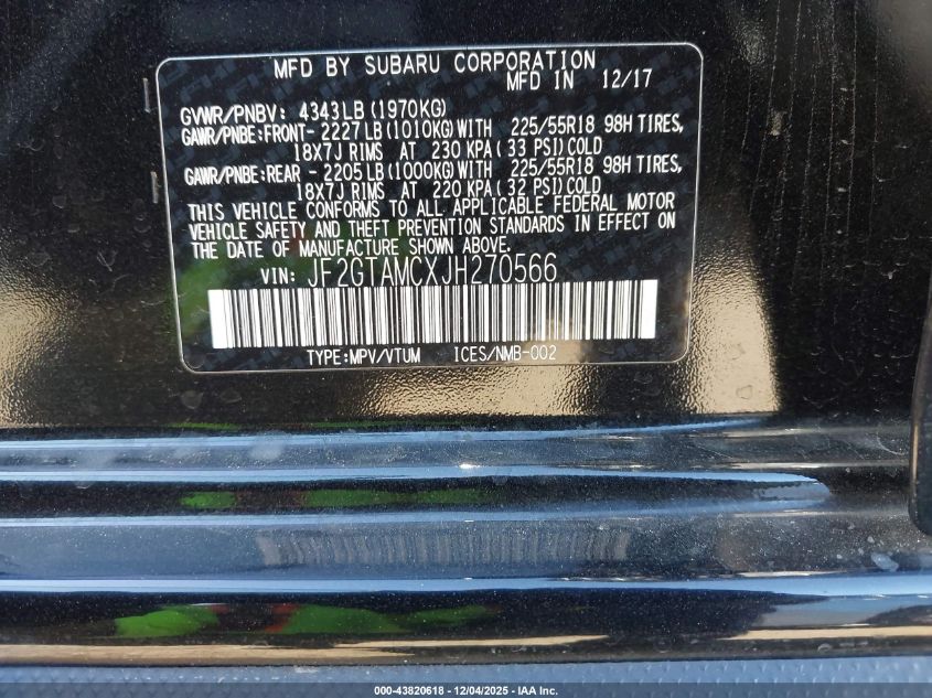 2018 SUBARU CROSSTREK 2018 року Бензин, 2.0, Повний привід, vin - JF2GTAMCXJH270566 з США