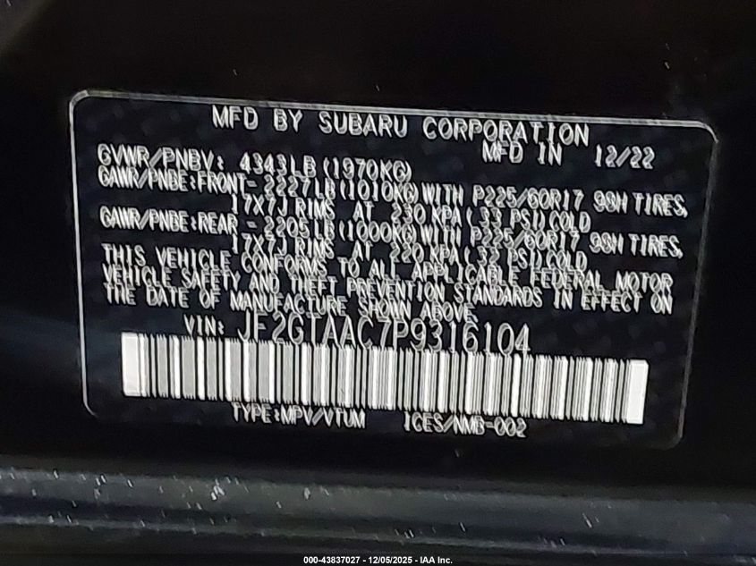 2023 SUBARU CROSSTREK 2023 року Бензин, 2.0, Повний привід, vin - JF2GTAAC7P9316104 з США