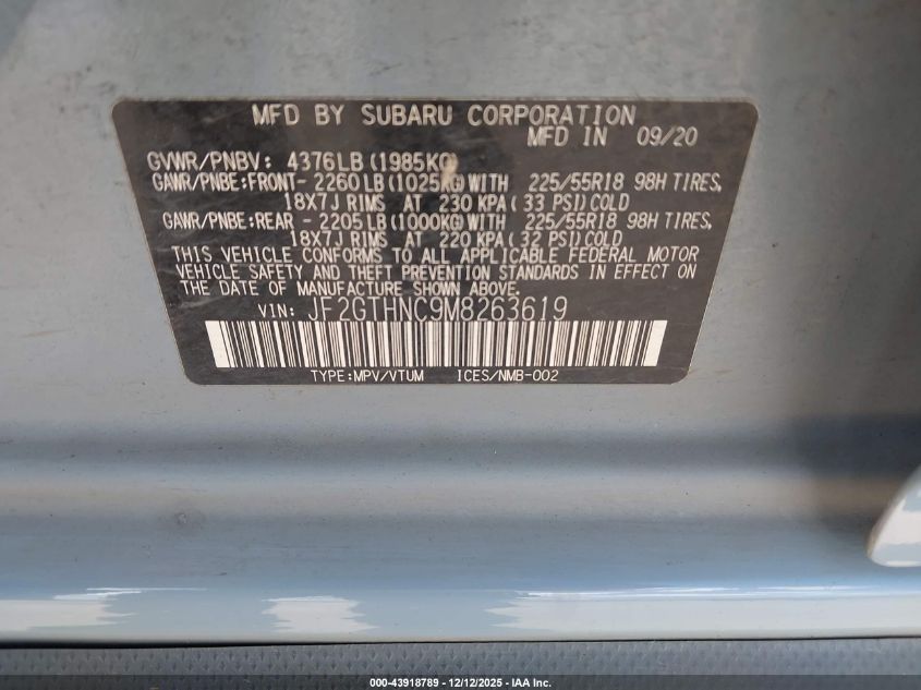 2021 SUBARU CROSSTREK 2021 року Бензин, 2.5, Повний привід, vin - JF2GTHNC9M8263619 з США