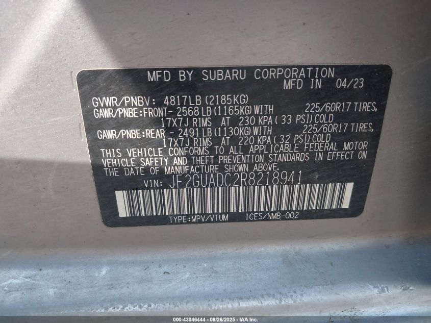 2024 SUBARU CROSSTREK 2024 року Бензин, 2.0, Повний привід, vin - JF2GUADC2R8218941 з США