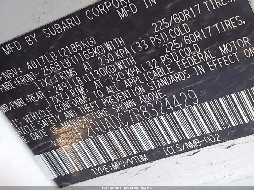 Колір БілийЦиліндри 4Привід Повний привідVIN JF2GUADC7R8324429Стан СтаціонарноУшкодження Перекидання AutoRIA