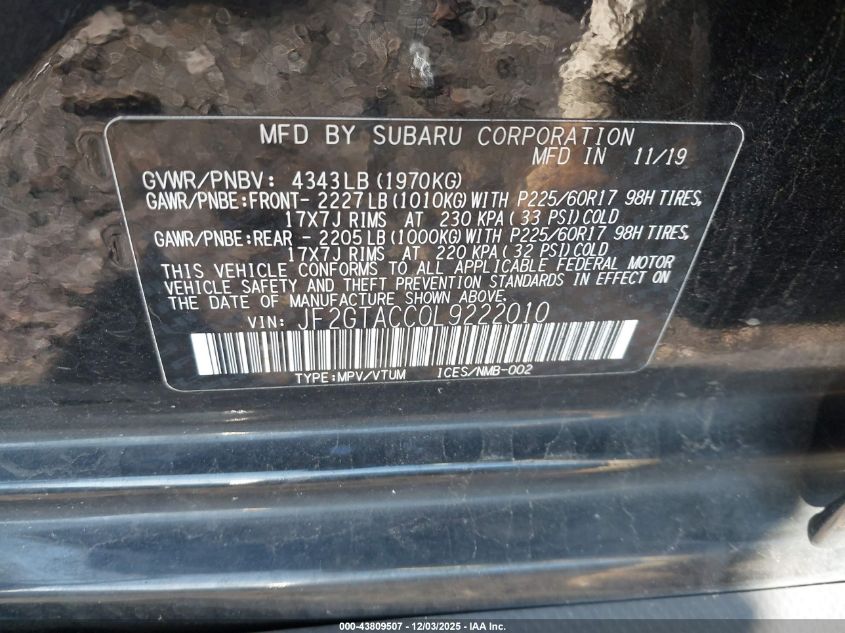 2020 SUBARU CROSSTREK 2020 року Бензин, 2.0, Повний привід, vin - JF2GTACC0L9222010 з США