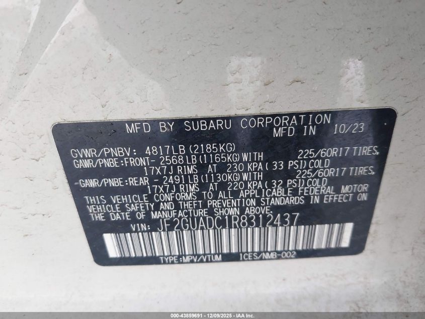 2024 SUBARU CROSSTREK 2024 року Бензин, 2.0, Повний привід, vin - JF2GUADC1R8312437 з США