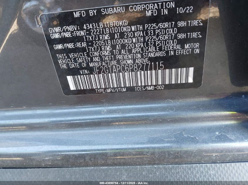 2023 SUBARU CROSSTREK 2023 року Бензин, 2.0, Повний привід, vin - JF2GTAPC6P8277115 з США