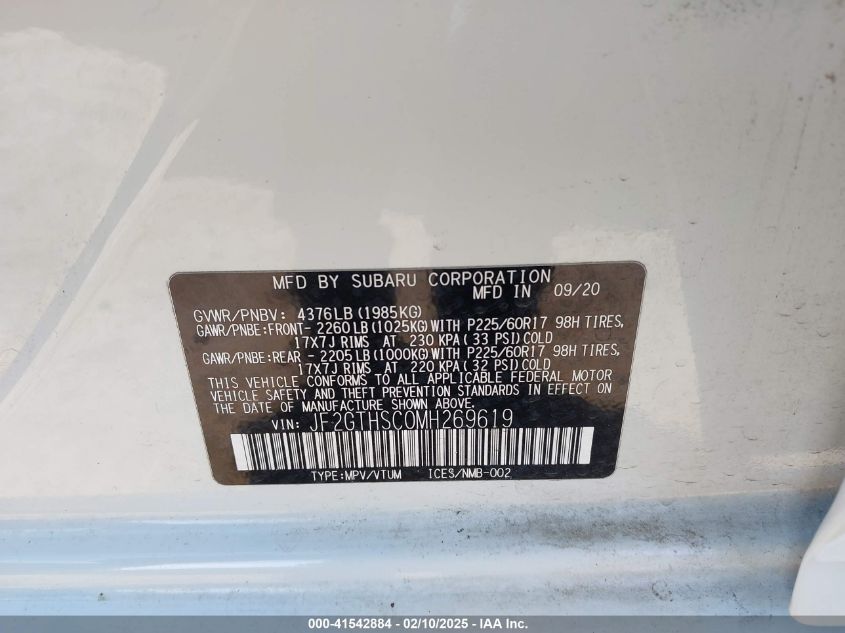 2021 SUBARU CROSSTREK 2021 року Бензин, 2.5, Повний привід, vin - JF2GTHSC0MH269619 з США