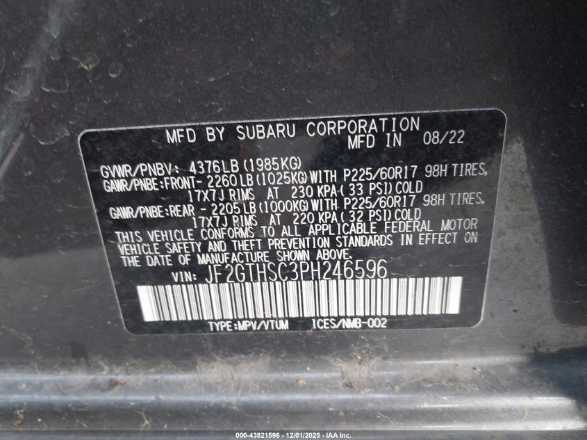 2023 SUBARU CROSSTREK 2023 року Бензин, 2.5, Повний привід, vin - JF2GTHSC3PH246596 з США