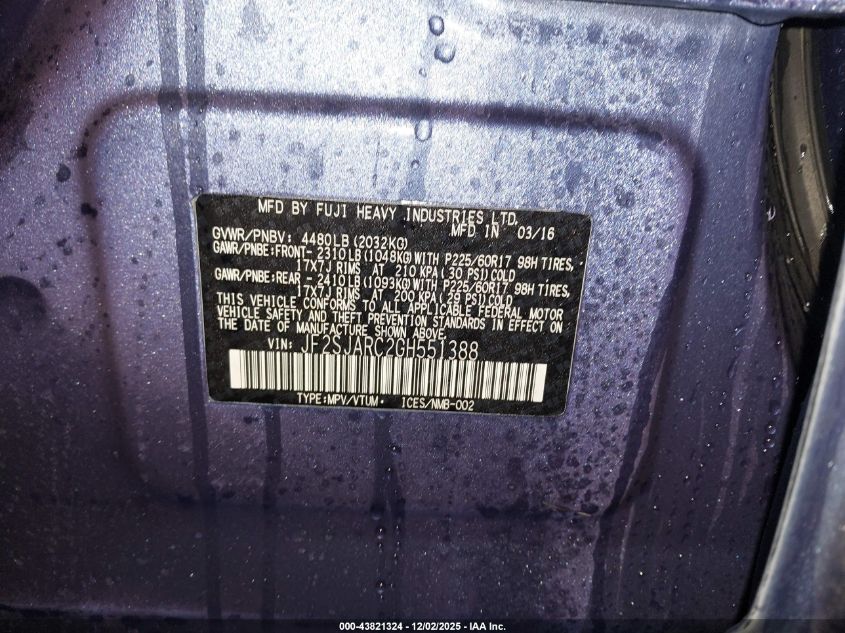 2016 SUBARU FORESTER 2016 року Бензин, 2.5, Повний привід, vin - JF2SJARC2GH551388 з США