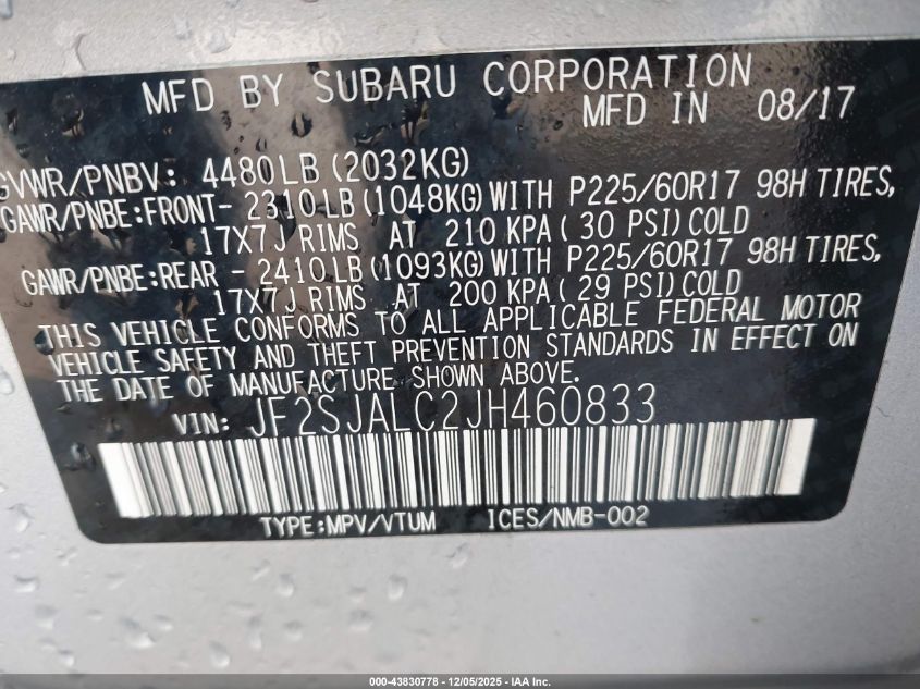 2018 SUBARU FORESTER 2018 року Бензин, 2.5, Повний привід, vin - JF2SJALC2JH460833 з США