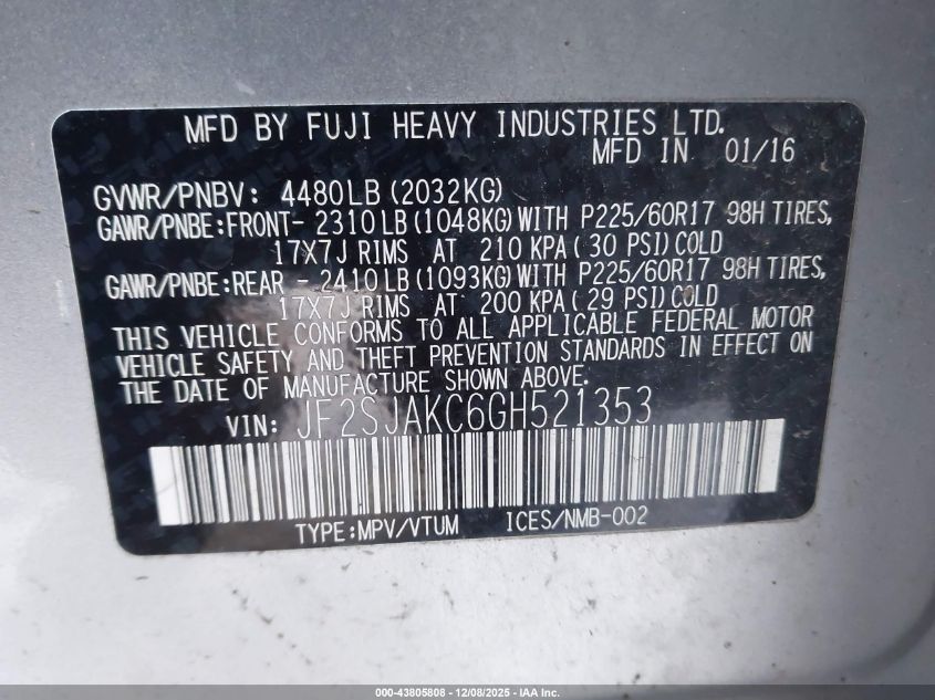 2016 SUBARU FORESTER 2016 року Бензин, 2.5, Повний привід, vin - JF2SJAKC6GH521353 з США