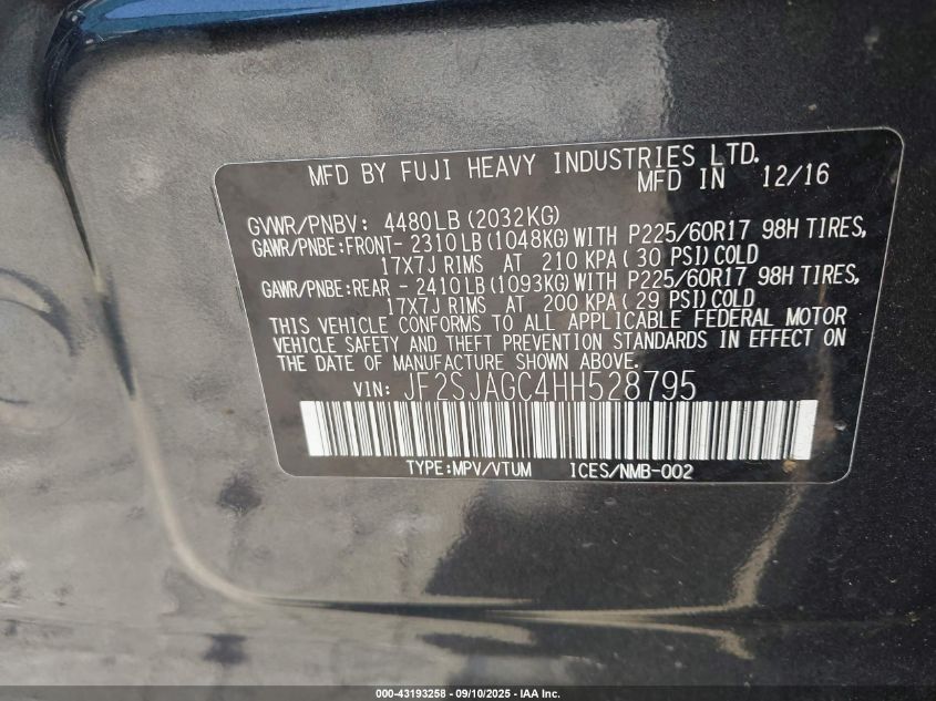 2017 SUBARU FORESTER 2017 року Бензин, 2.5, Повний привід, vin - JF2SJAGC4HH528795 з США