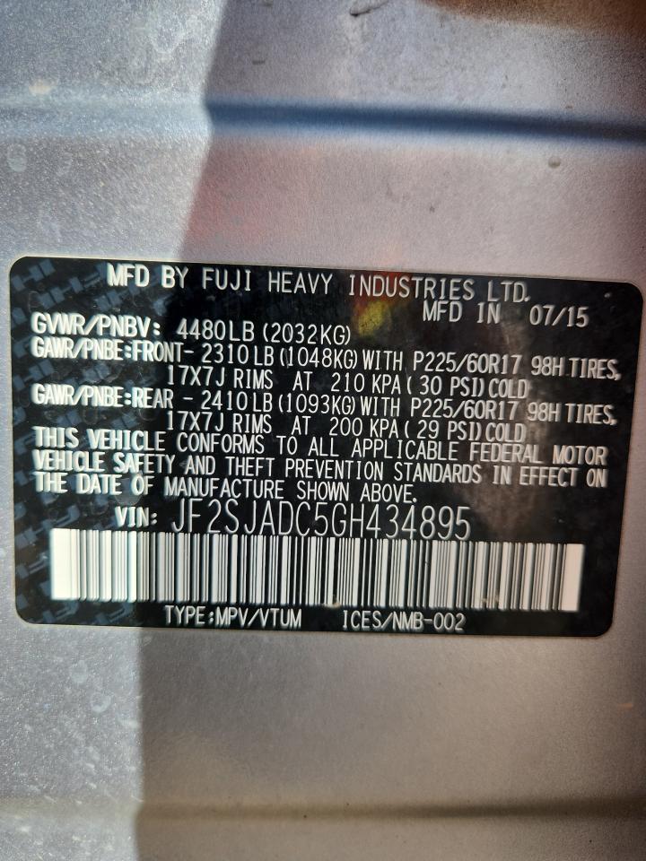 Колір СрібнийЦиліндри 4Привід Повний привідVIN JF2SJADC5GH434895Стан Заводиться та їде (перевірено)Ушкодження Передня або задня AutoRIA