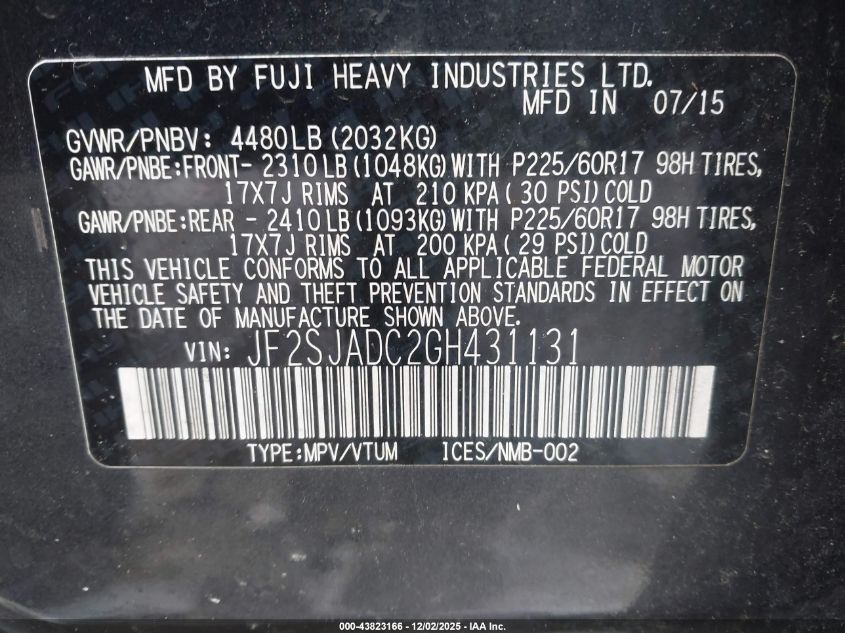 2016 SUBARU FORESTER 2016 року Бензин, 2.5, Повний привід, vin - JF2SJADC2GH431131 з США