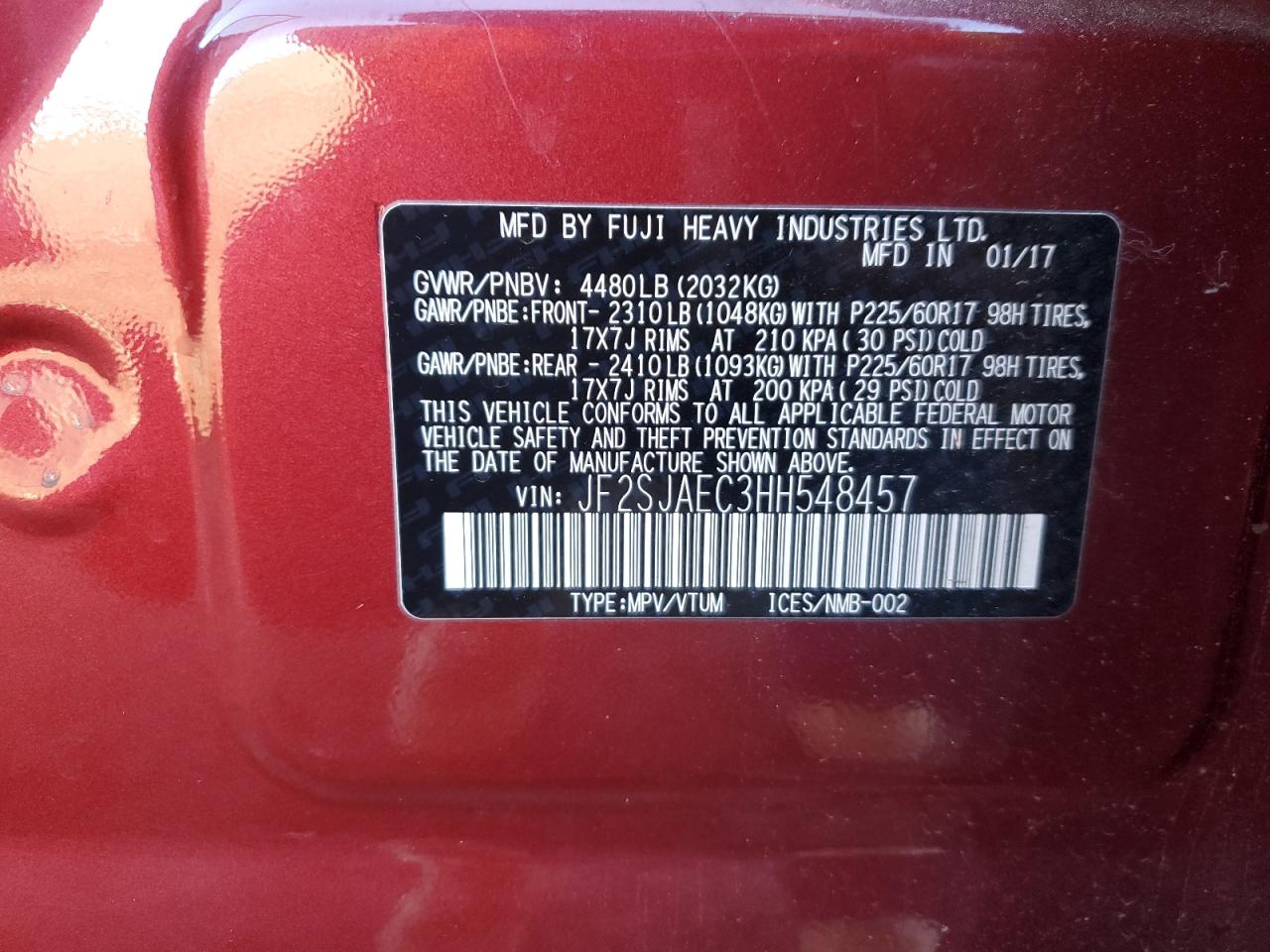 Колір БордовийЦиліндри 4Привід Повний привідVIN JF2SJAEC3HH548457Стан НевідомоУшкодження Передня або задня AutoRIA