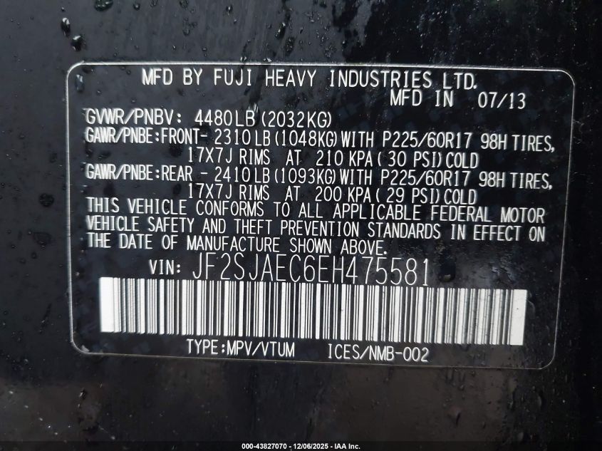 Колір ЧорнийЦиліндри 4Привід Повний привідVIN JF2SJAEC6EH475581Стан Заводиться та їде (перевірено)Ушкодження Права сторона AutoRIA