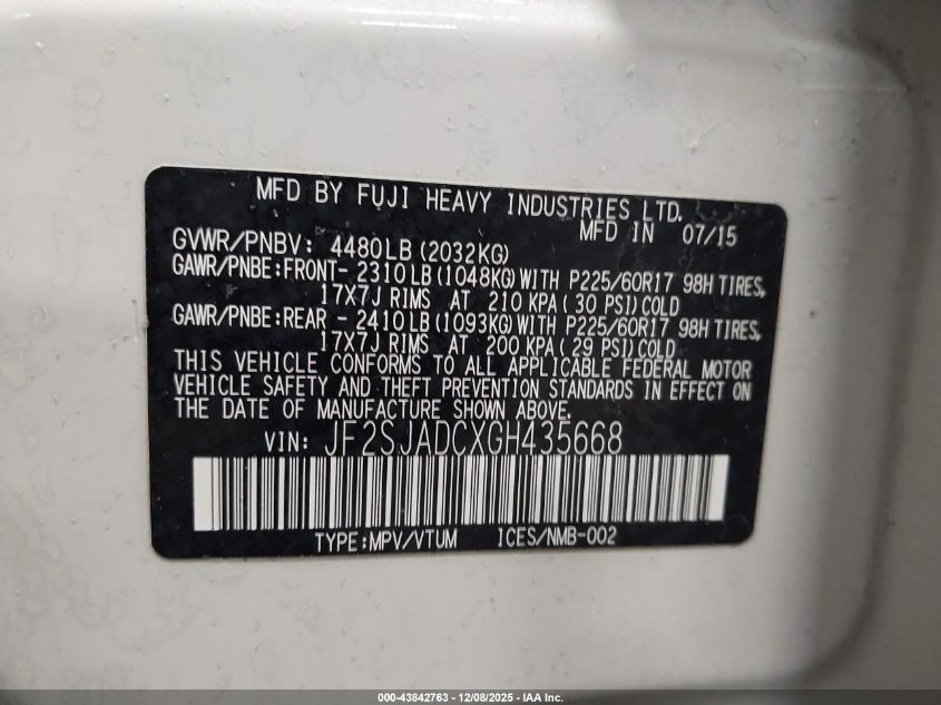 2016 SUBARU FORESTER 2016 року Бензин, 2.5, Повний привід, vin - JF2SJADCXGH435668 з США