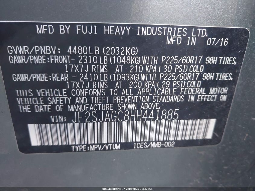 2017 SUBARU FORESTER 2017 року Бензин, 2.5, Повний привід, vin - JF2SJAGC8HH441885 з США