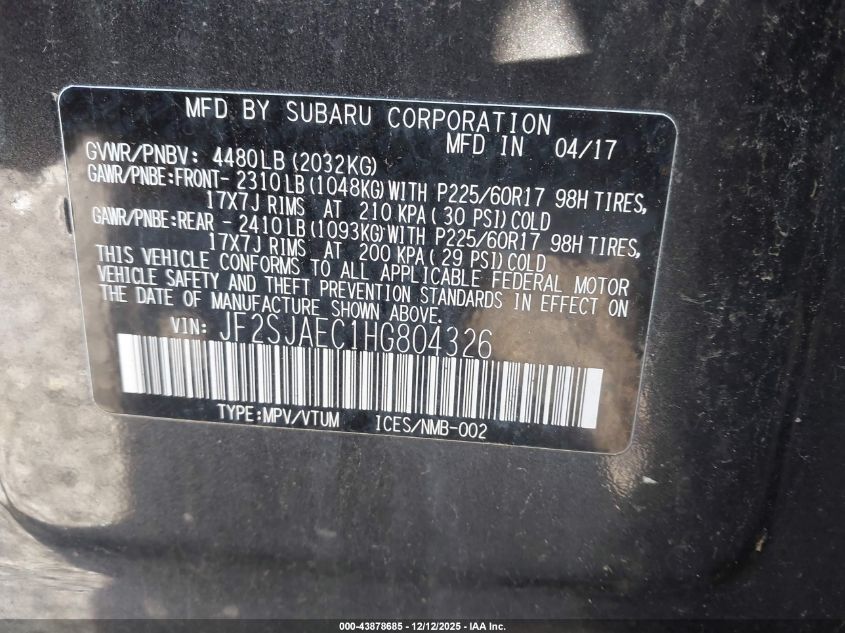 2017 SUBARU FORESTER 2017 року Бензин, 2.5, Повний привід, vin - JF2SJAEC1HG804326 з США