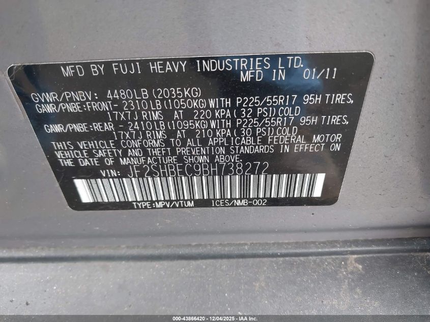 Колір СірийЦиліндри 4Привід Повний привідVIN JF2SHBEC9BH738272Стан СтаціонарноУшкодження Мотор AutoRIA