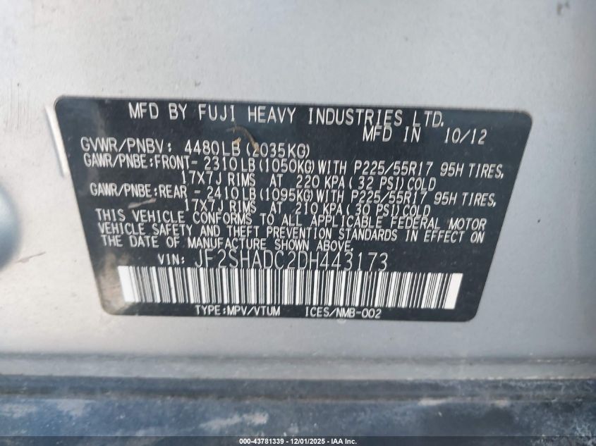 Колір СрібнийЦиліндри 4Привід Повний привідVIN JF2SHADC2DH443173Стан Заводиться та їде (перевірено)Ушкодження Звичайний знос AutoRIA