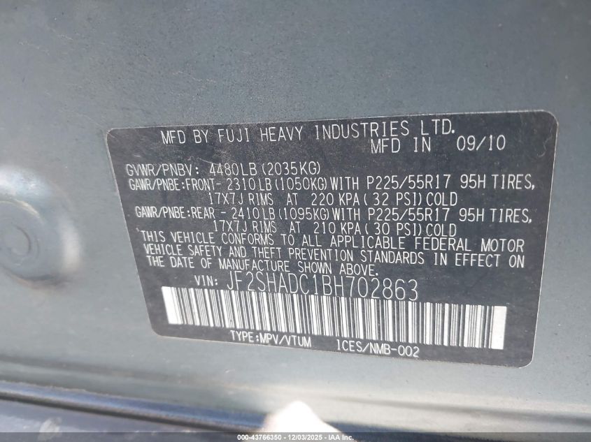 2011 SUBARU FORESTER 2.5X PREMIUM