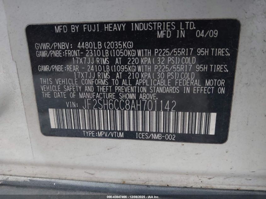 2010 SUBARU FORESTER 2.5X LIMITED