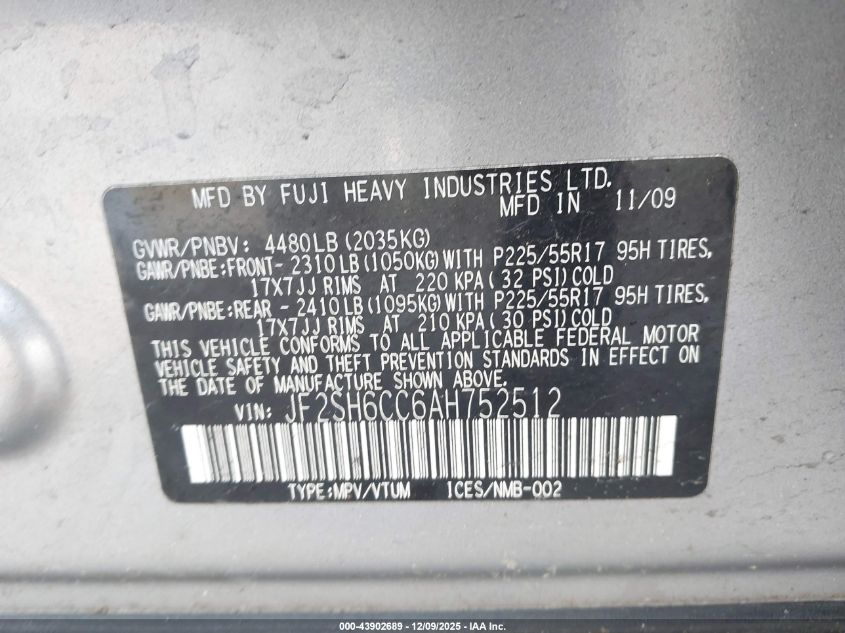 2010 SUBARU FORESTER 2.5X PREMIUM