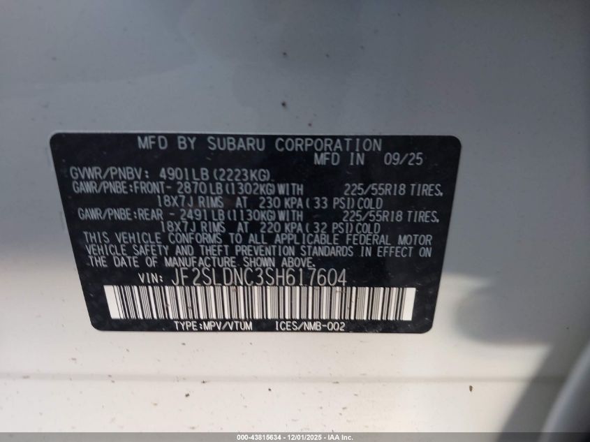 2025 SUBARU FORESTER 2025 року Бензин, 2.5, Повний привід, vin - JF2SLDNC3SH617604 з США