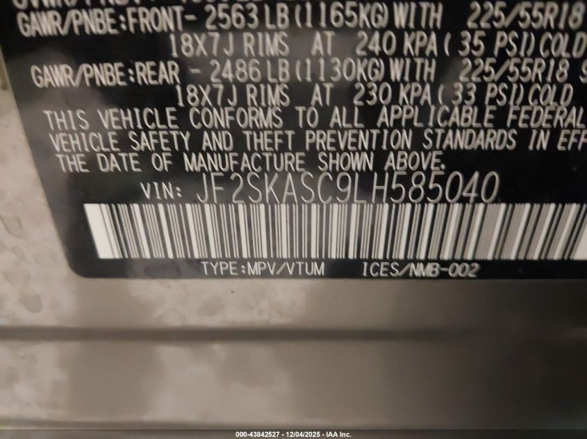 2020 SUBARU FORESTER 2020 року Бензин, 2.5, Повний привід, vin - JF2SKASC9LH585040 з США