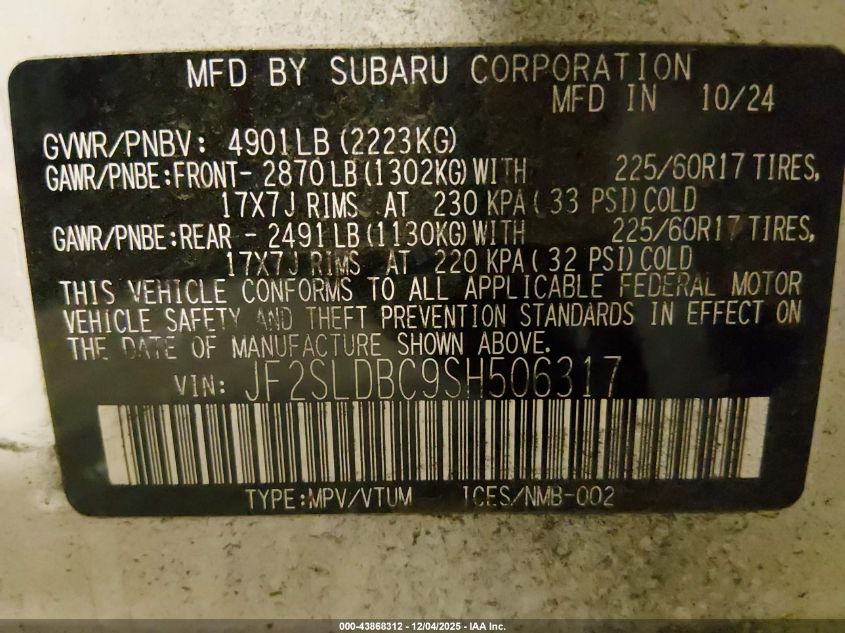 2025 SUBARU FORESTER 2025 року Бензин, 2.5, Повний привід, vin - JF2SLDBC9SH506317 з США