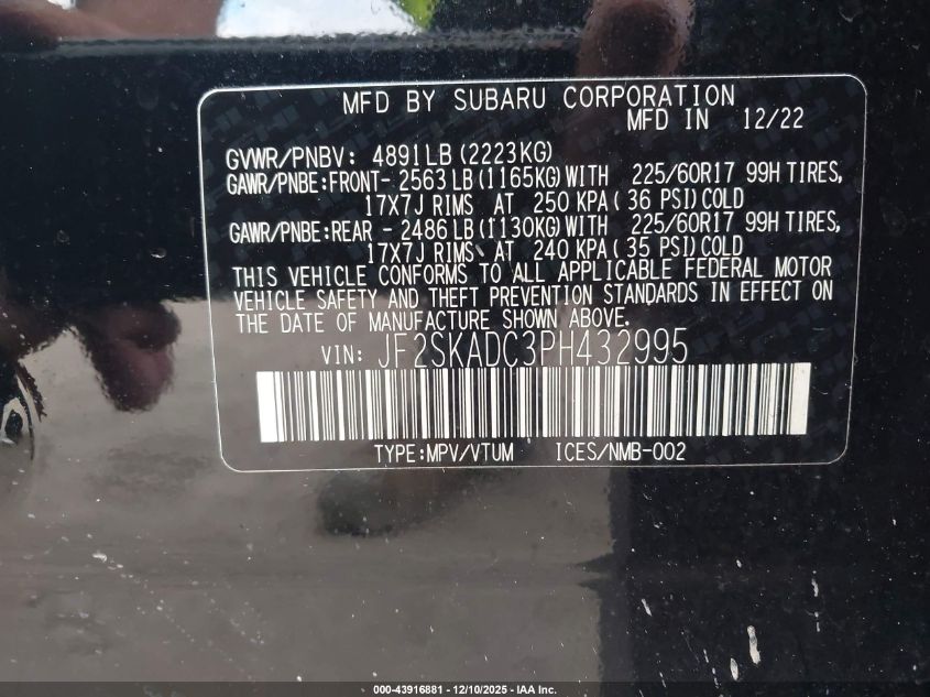 2023 SUBARU FORESTER 2023 року Бензин, 2.5, Повний привід, vin - JF2SKADC3PH432995 з США